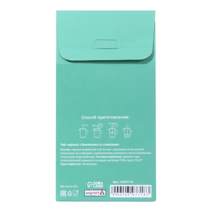 Чай "Моей маме" - это премиальный чёрный индийский чай Ассам, представленный в элегантной подарочной упаковке. Этот чай отличается своим изысканным вкусом и ароматом, который создаётся благодаря сочетанию ягод лесной земляники со сливками, рубленного листа земляники и кусочков ягод клубники.