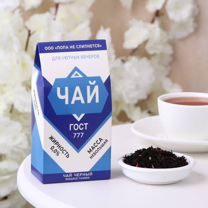 Чай "Попа не слипнется" - это оригинальный чёрный индийский чай Ассам, представленный в уникальной подарочной упаковке. Этот чай отличается своим ярким и насыщенным вкусом, который создаётся благодаря сочетанию тропических фруктов, красной смородины и кусочков ягод малины.