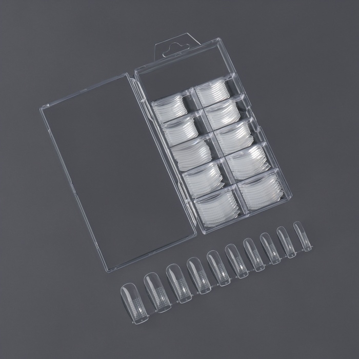 Гелевые типсы для наращивания ногтей, 240 шт, форма овал, полное матовое покрытие, в контейнере, цвет прозрачный