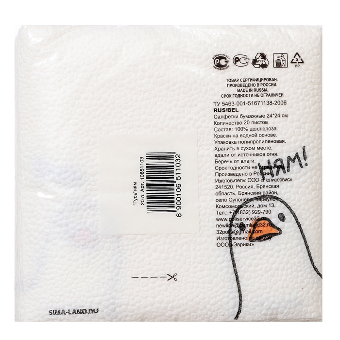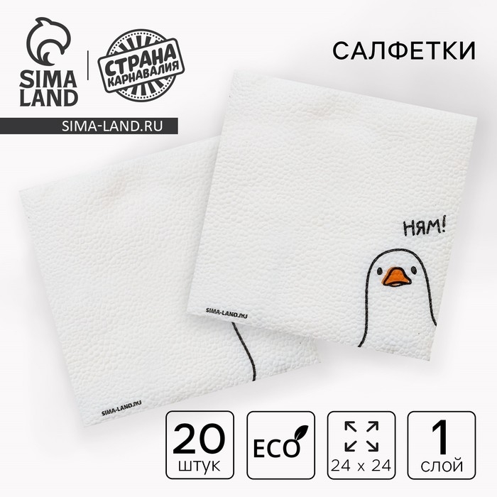Салфетки бумажные однослойные "Гусь"ням 24х24 см, набор 20 шт.