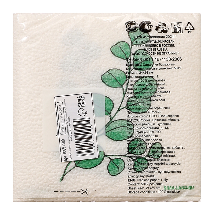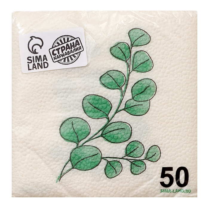 Салфетки бумажные однослойные "Эко" эвкалипт 24х24 см, набор 50 шт.