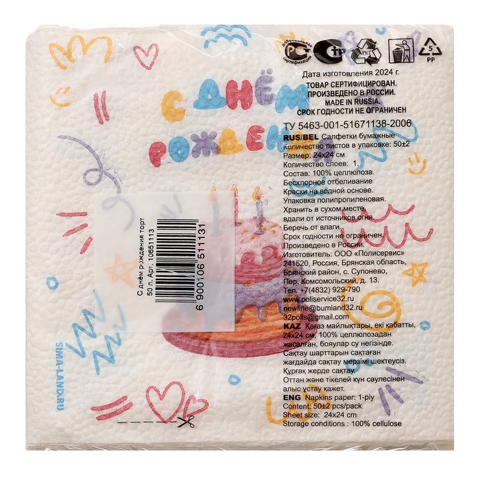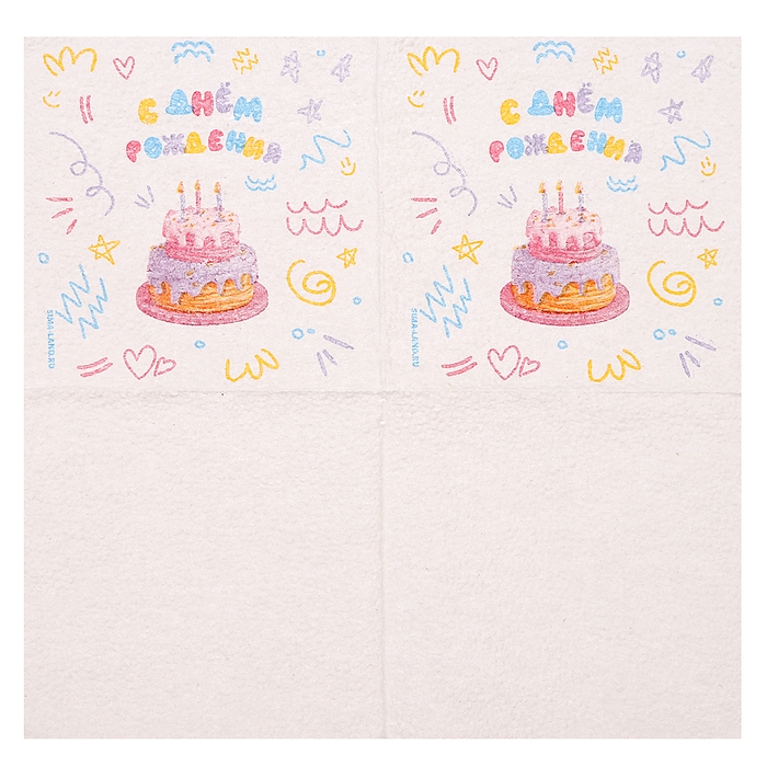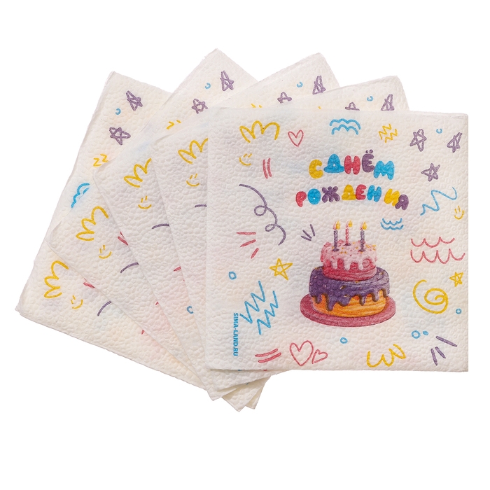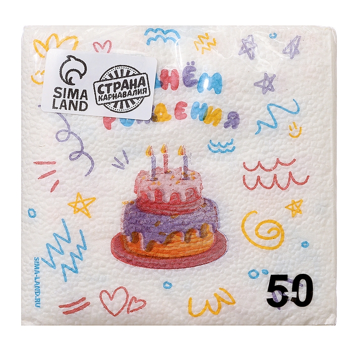 Салфетки бумажные однослойные "С днём рождения" торт, 24х24 см, набор 50 шт.