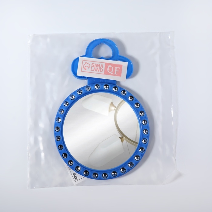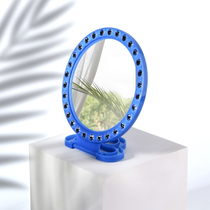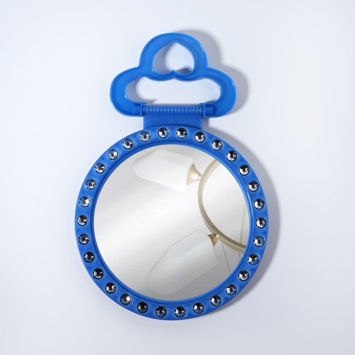 Зеркало настольное, зеркальная поверхность d = 12 см, фасовка 10 шт, цвет синий
