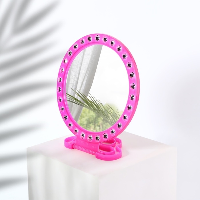 Зеркало настольное, зеркальная поверхность d = 12 см, фасовка 10 шт, цвет розовый