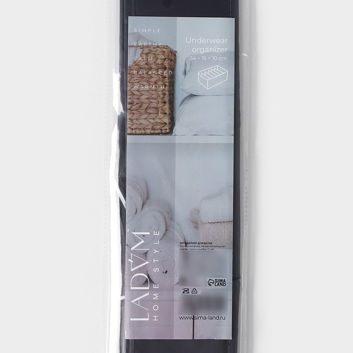 Органайзер для хранения белья LaDо́m, 6 ячеек, 34×15×10 см, цвет графитовый