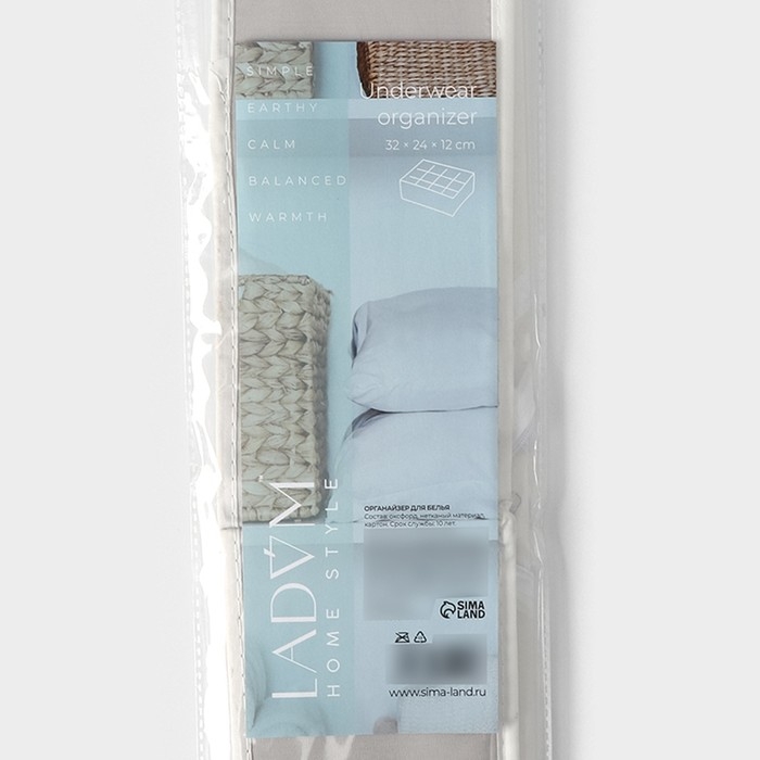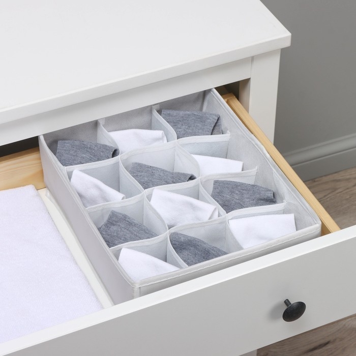 Органайзер для хранения белья LaDо́m, 12 ячеек, 32×24×12 см, цвет серый