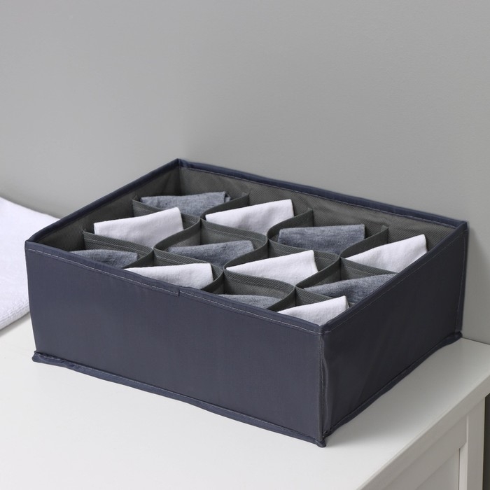 Органайзер для хранения белья LaDо́m, 12 ячеек, 32×24×12 см, цвет графитовый