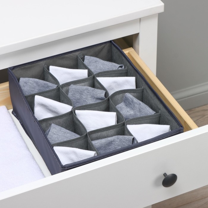 Органайзер для хранения белья Доляна «Тропики», 16 ячеек, 27×25×10 см, цвет синий
