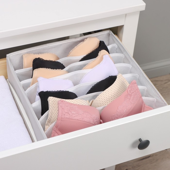 Органайзер для хранения белья Доляна «Нея», 7 ячеек, 34×30×8 см, цвет серый