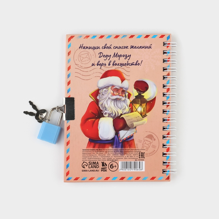 Блокнот новогодний на замочке 50 листов «Новогодний список желаний»