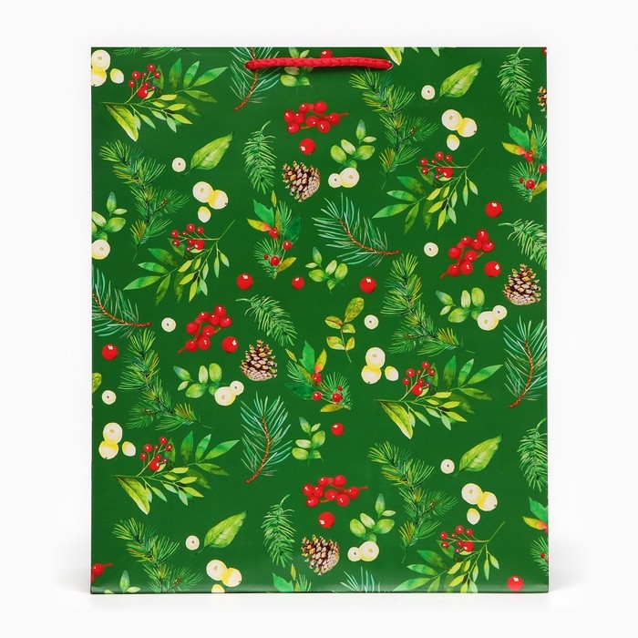 Новый год. Пакет подарочный "Веточки", 26 х 32 х 12 см.