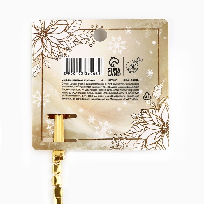 Заколка прядь со стразами новогодняя «Верь в мечту», на Новый год, 1,5 х 1,5 х 2 х 45 см