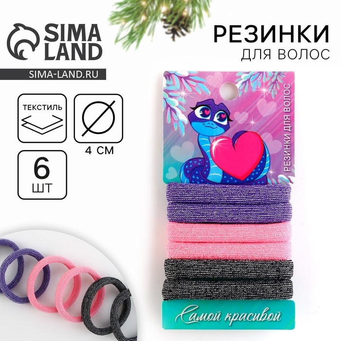 Резинки для волос новогодние «Милаш» на Новый год, набор 6 шт, d = 4 см