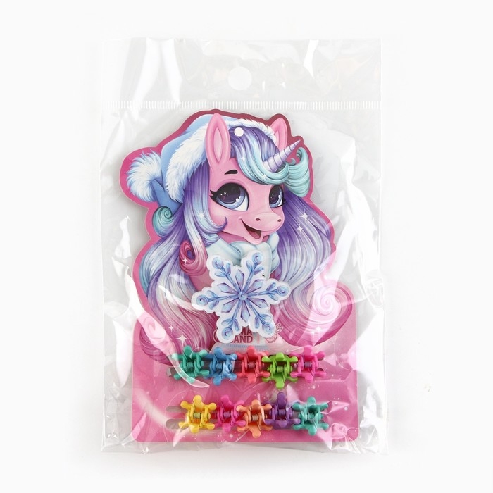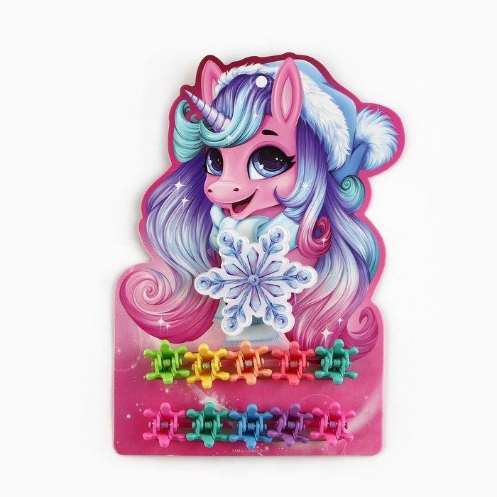 Заколка и крабики для волос новогодние «Единорог» на Новый год, 10 х 10,4 см