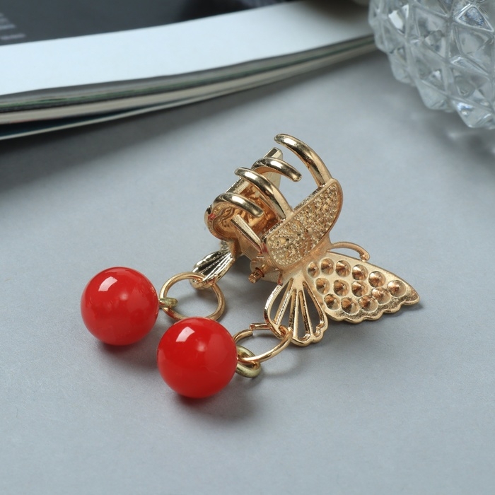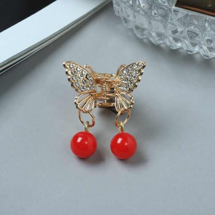 Краб для волос "Милада" красные бусинки, 2,5 см, золото
