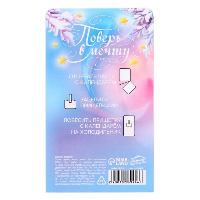 Новогодний магниты-прищепки «Новый год: Волшебного нового года голография», 7 х 12,7 х 1,5 см