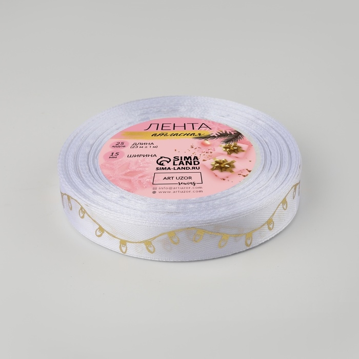Лента атласная «Снежный карнавал», 25 мм, 23 ± 1 м, цвет белый