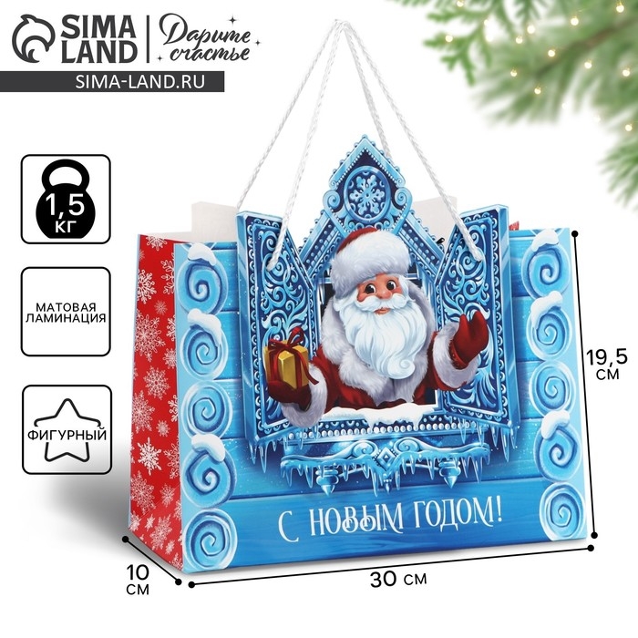 Пакет подарочный новогодний «Дед Мороз», 30 х 26 х 10 см , Новый год