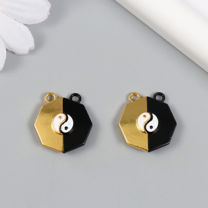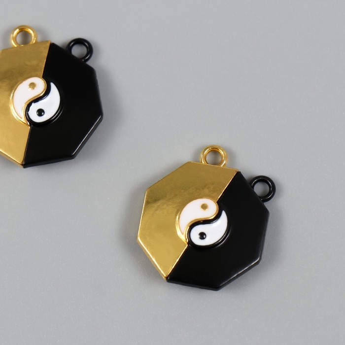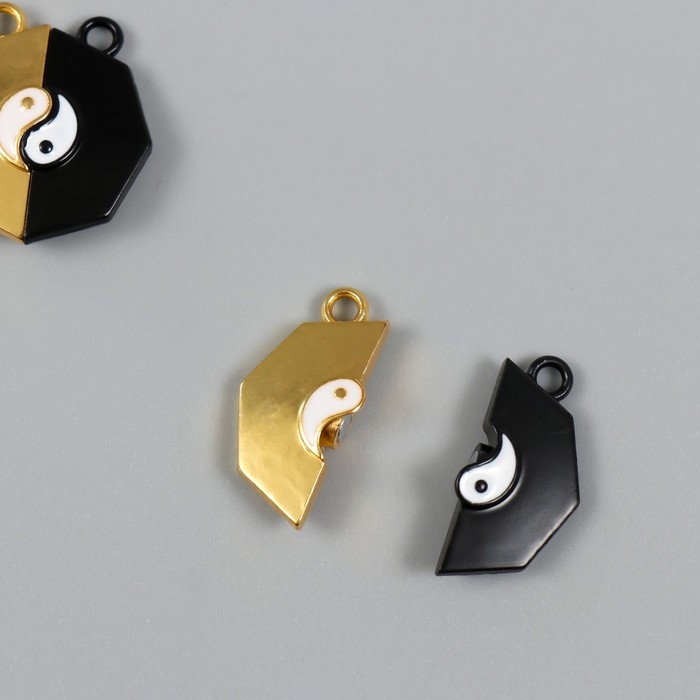 Замок магнитный металл "Инь-ян" чёрный и золотой 2х2,2х0,5 см (набор 2 половинки)