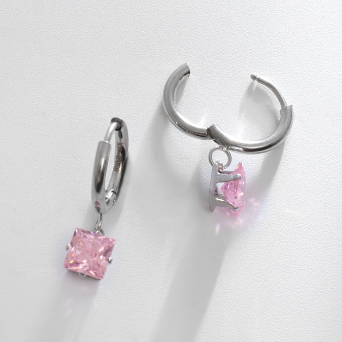 Серьги со стразами XUPING ромб мини, цвет розовый в серебре