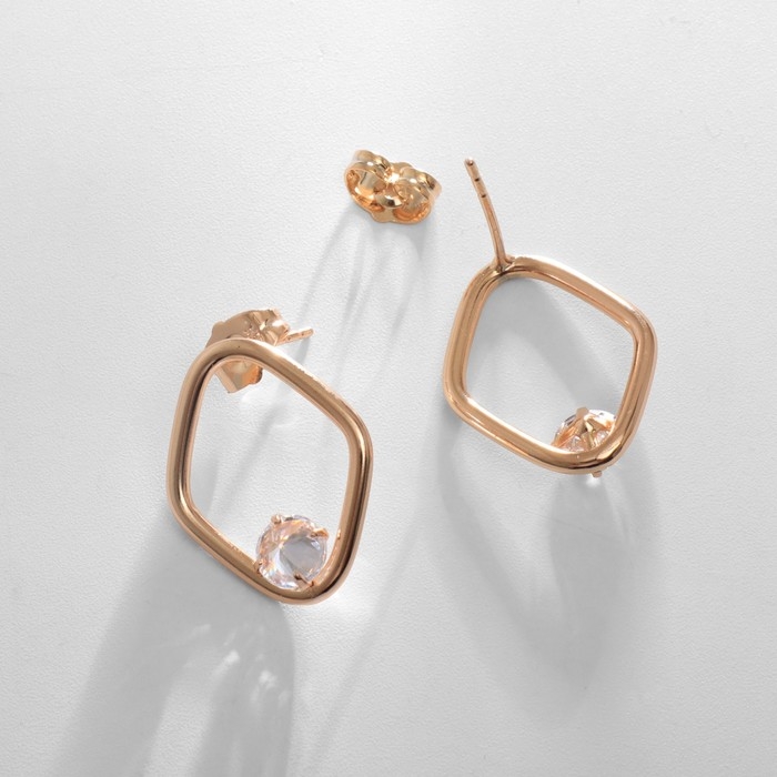 Серьги со стразами XUPING контур восторг, цвет белый в розовом золоте