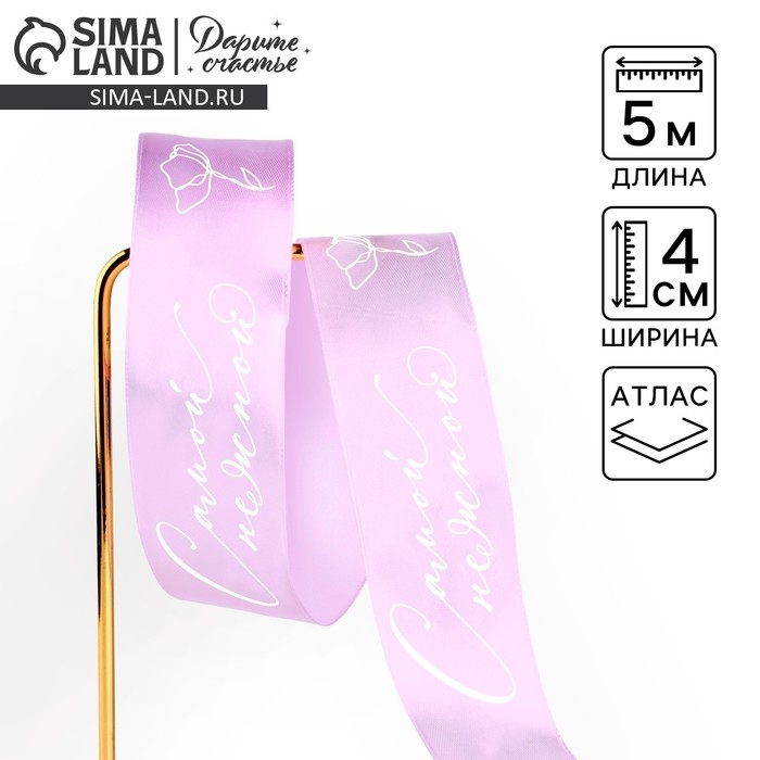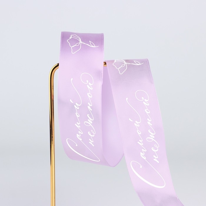 Лента атласная «Самой нежной», сиреневая , 4 см х 5 метров