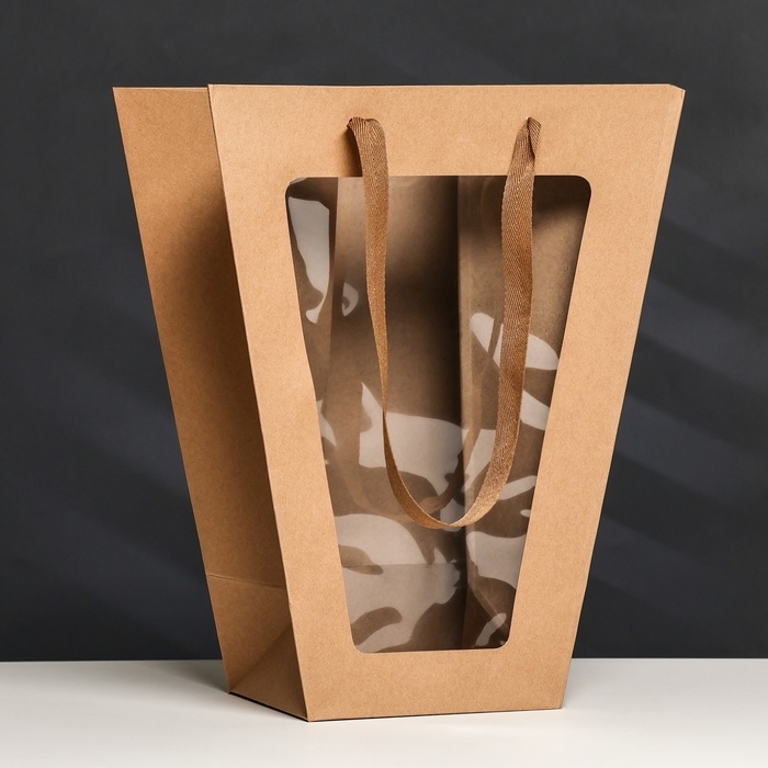 Пакет-переноска для цветов 18 × 14 × 35 х 28 см, крафт