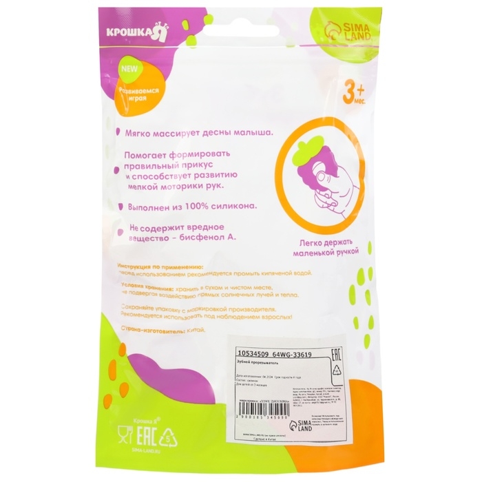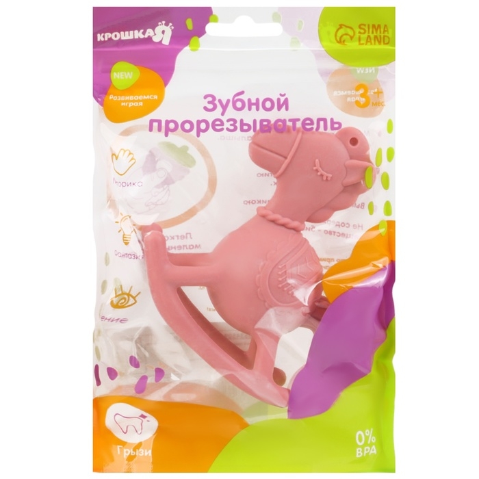 Игрушка - прорезыватель силиконовый с погремушкой «Лошадка», цвет розовый, Крошка Я