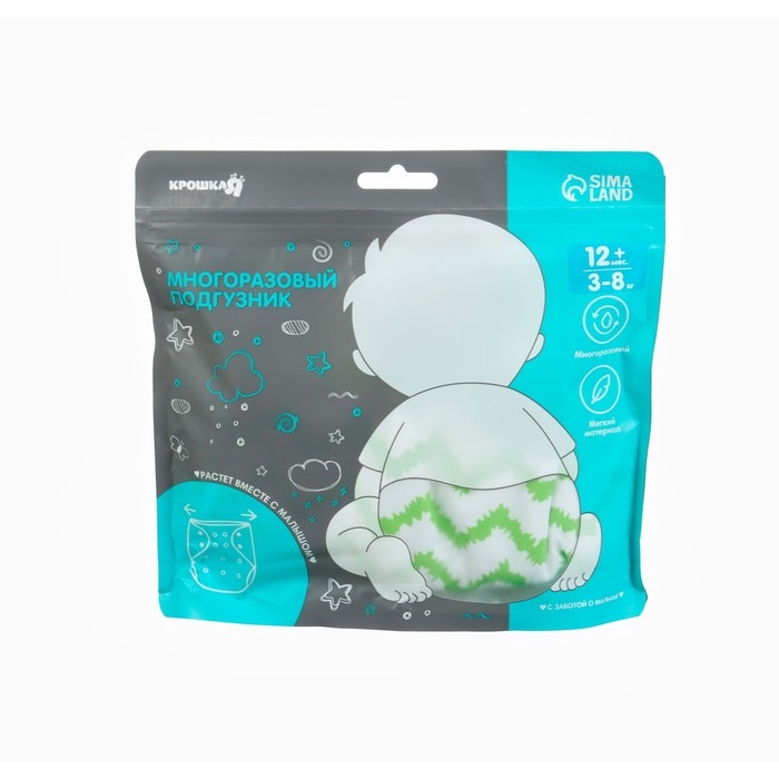 Многоразовый подгузник «Зигзаги», 3-15 кг, цвет зеленый, Крошка Я