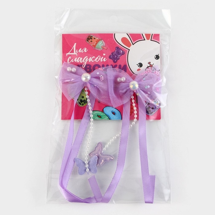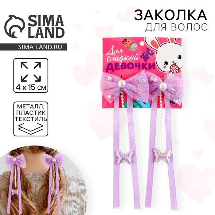 Заколки для волос с бантиком «Для сладкой девочки»,2 шт., 4 х 15 см