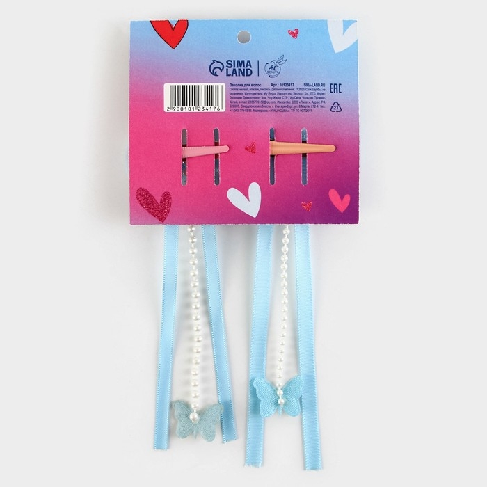 Заколки для волос с бантиком «Моей принцессе»,2 шт., 4 х 15 см