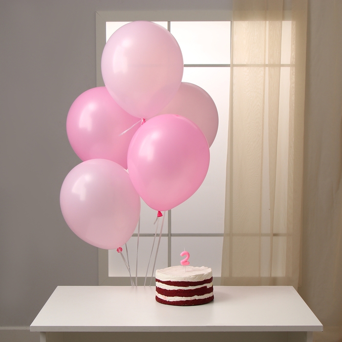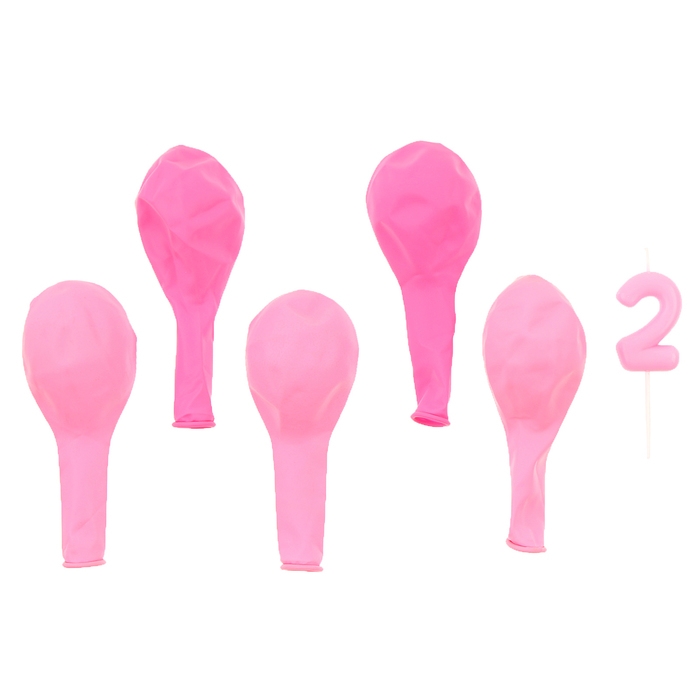 Свечи для торта + 5 шаров, цифра 2, розовая