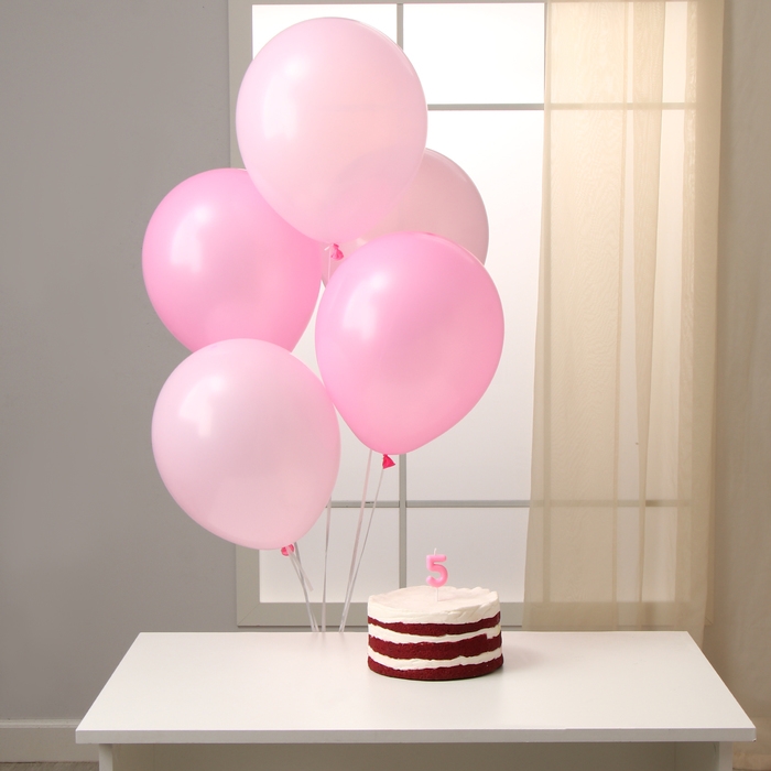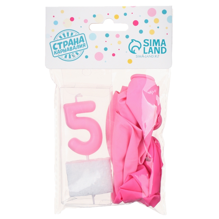 Свечи для торта + 5 шаров, цифра 5, розовая