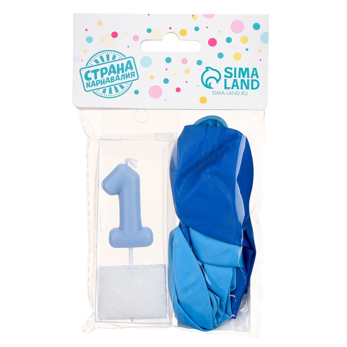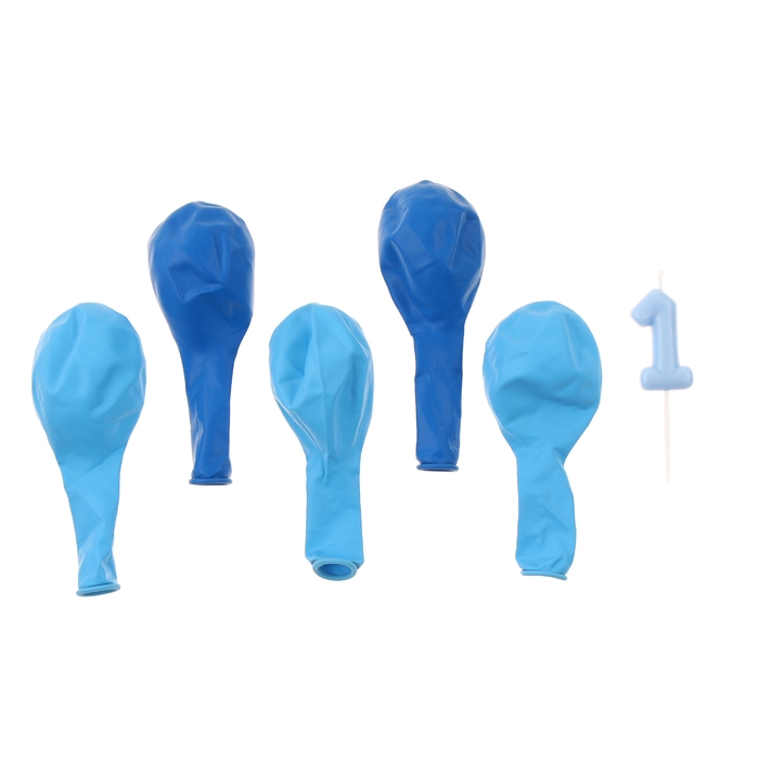 Свечи для торта + 5 шаров, цифра 1, голубая