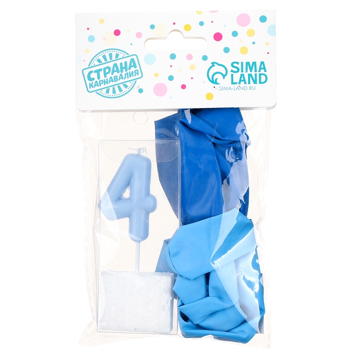 Свечи для торта + 5 шаров, цифра 4, голубая