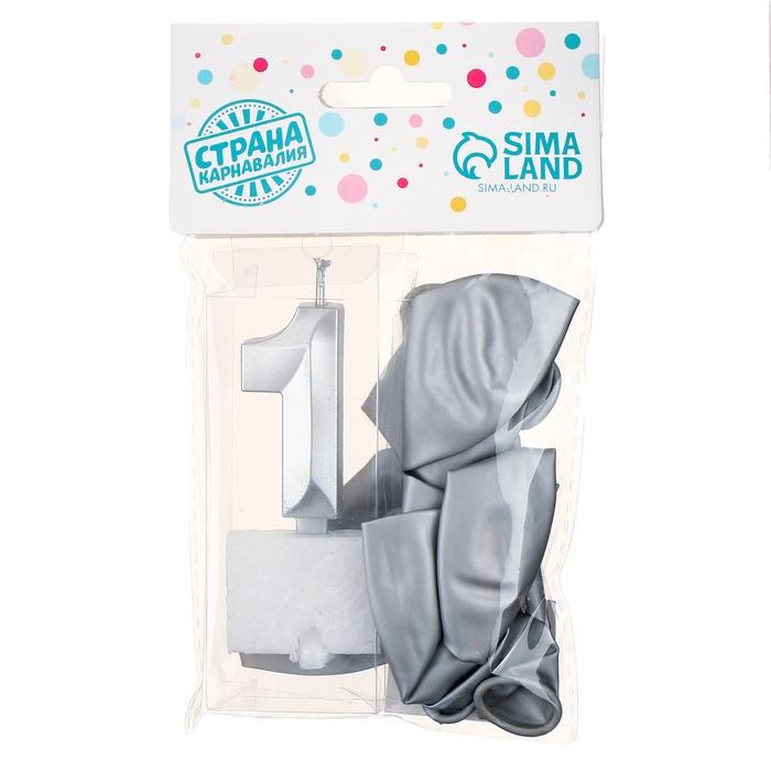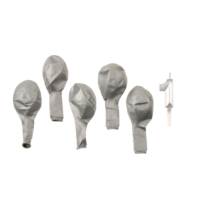 Свечи для торта + 5 шаров, цифра 1, серебро