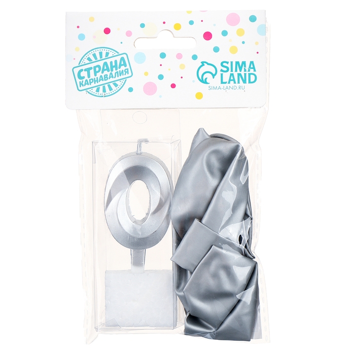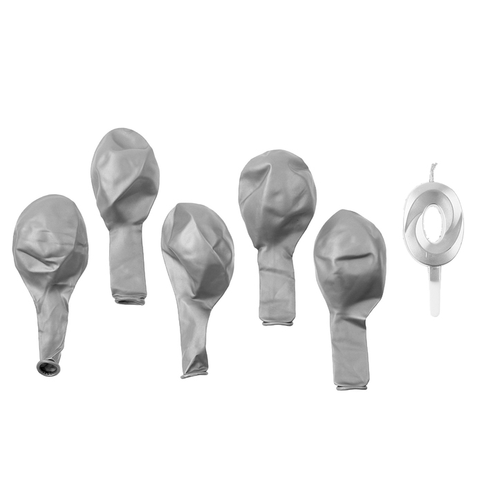 Свечи для торта + 5 шаров, цифра 0, серебро