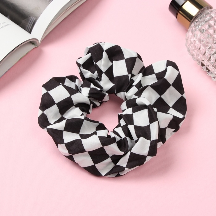Резинка для волос "Орбита" клетка стиль, 12 см, чёрно-белый