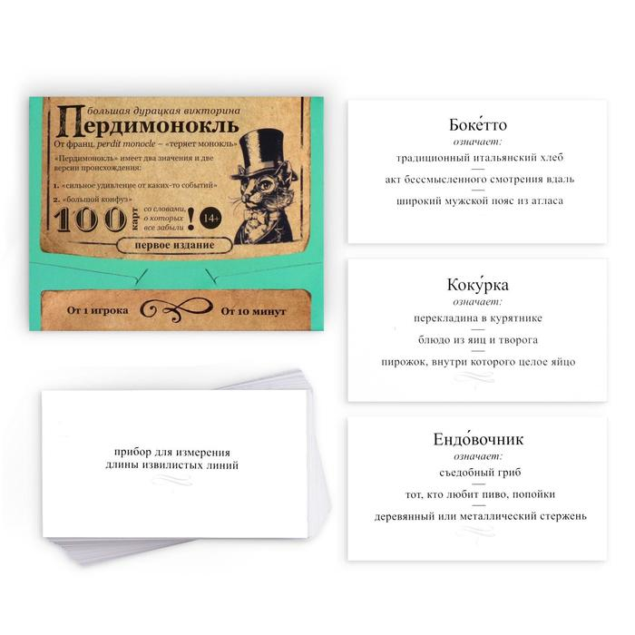 Настольная игра большая дурацкая викторина «Пердимонокль. Том 11», 100 карт