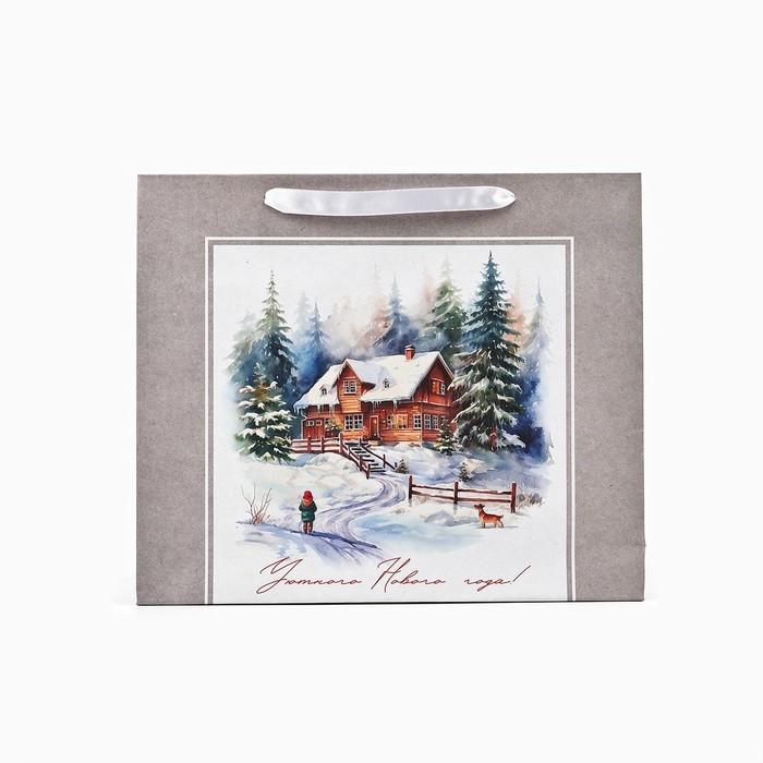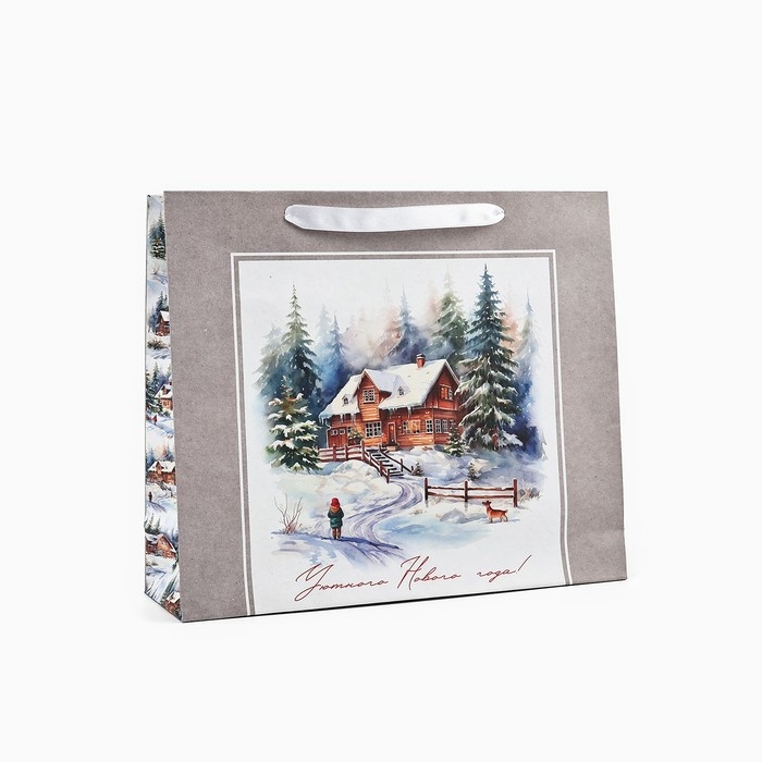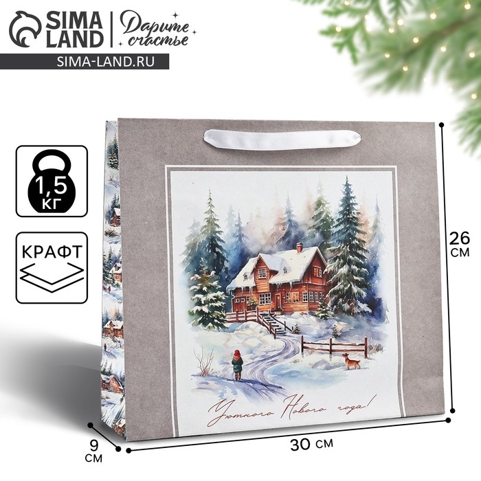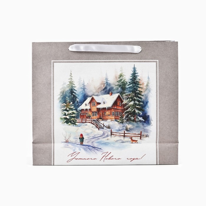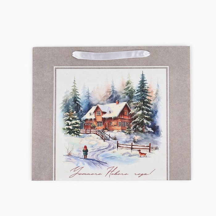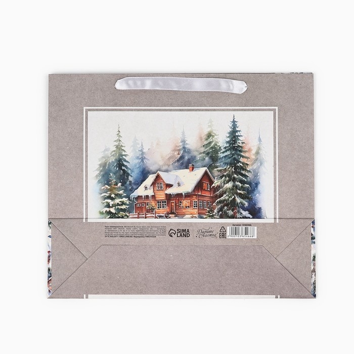 Пакет подарочный новогодний крафтовый вертикальный «Зимний лес», M 26 х 30 х 9 см 9564906 , Новый год