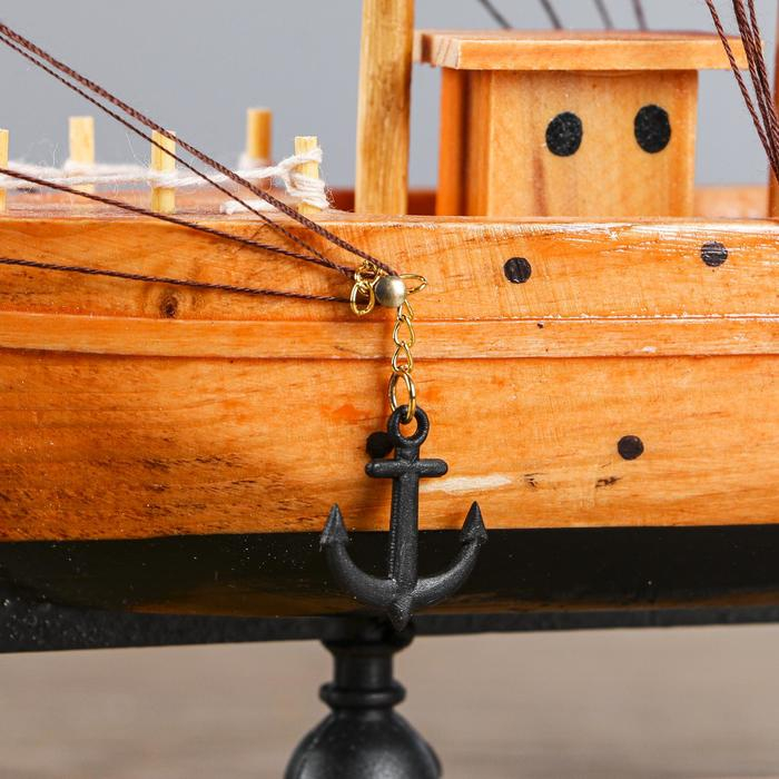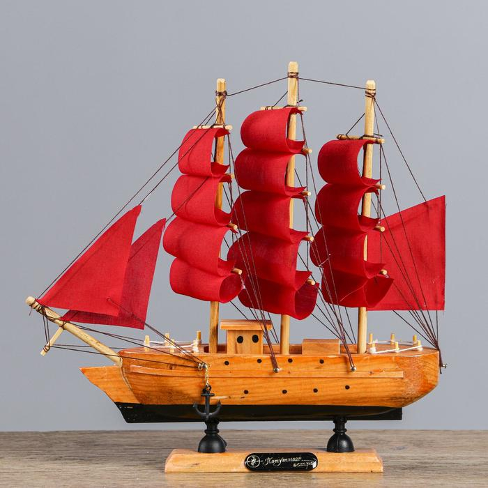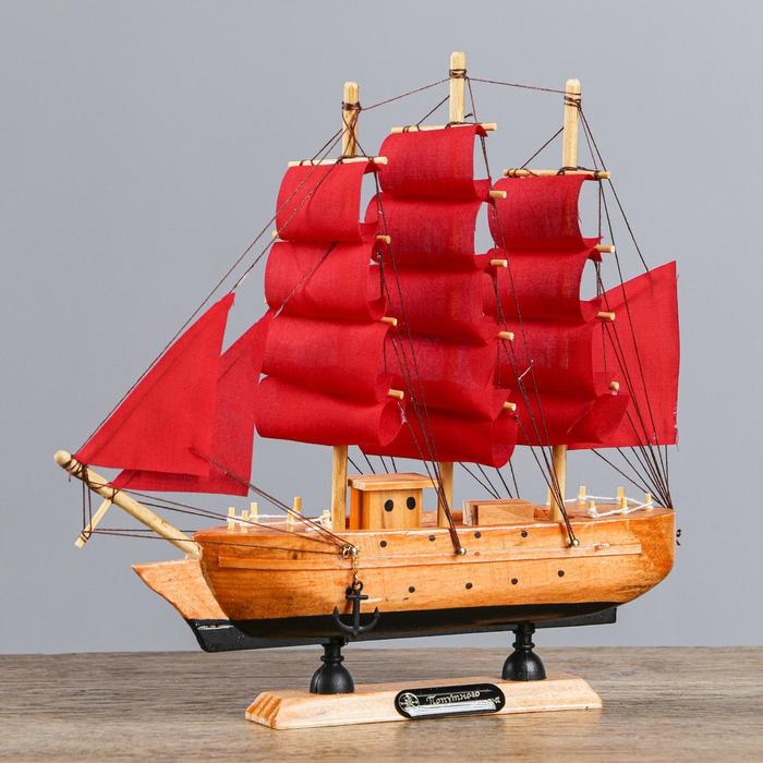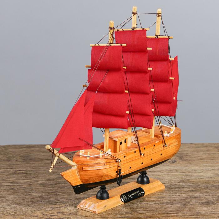 Корабль сувенирный малый «Дакия», борта светлое дерево, паруса алые, 5×23×22 см