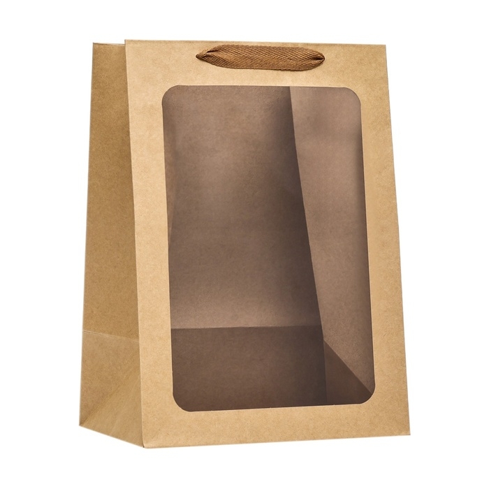 Пакет подарочный с окном, 35 х 25 х 18 см, крафт - это стильное и функциональное решение для упаковки и транспортировки подарков.