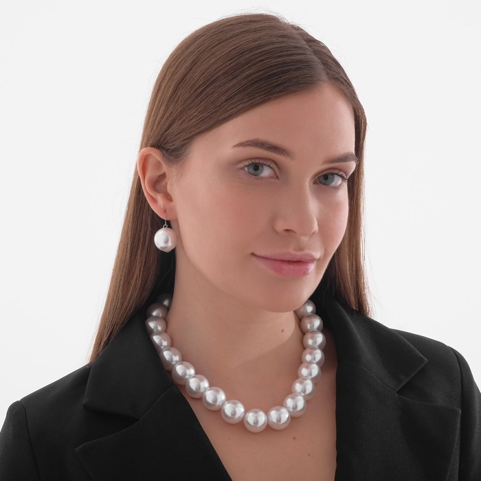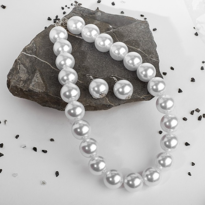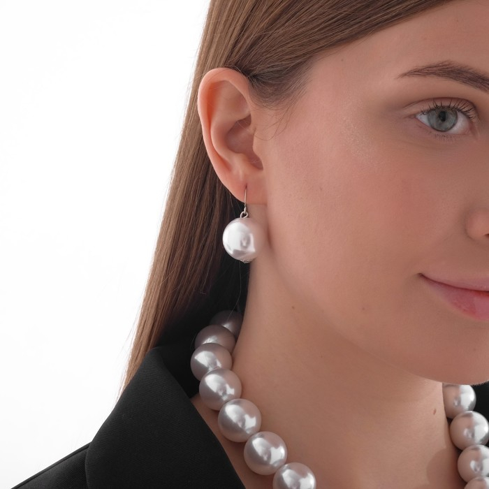 Набор 2 предмета: серьги, бусы «Жемчуг» крупные бусины, цвет белый, 43 см