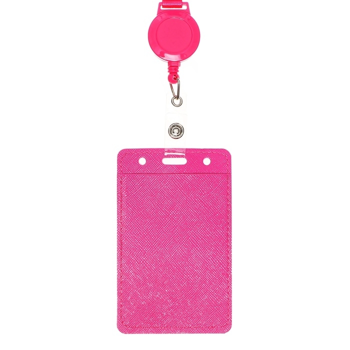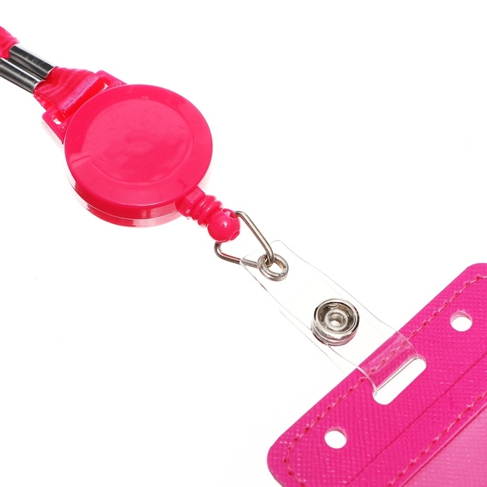 Бейдж-карман вертикальный кожзам, внешний 110x68мм, внутренний 85x54мм, лента 80x1,2см, розовый.