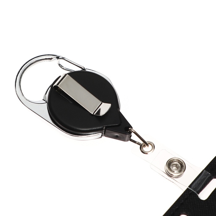 Карабин для бейджа, с держателем-рулеткой, на кнопке, синий