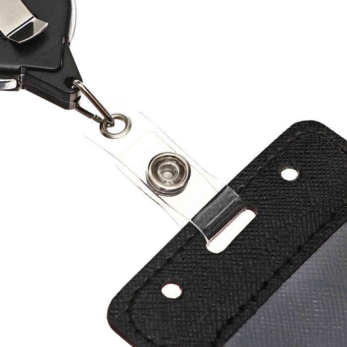 Бейдж-карман вертикальный кожзам, внешний 109x67мм, внутренний 85x54мм, рулетка 65см, черный.