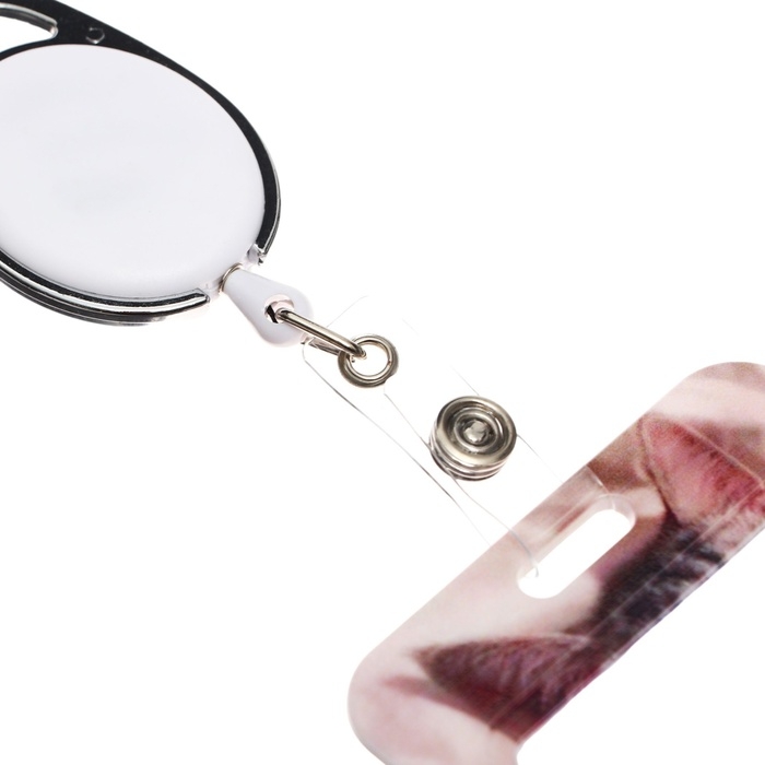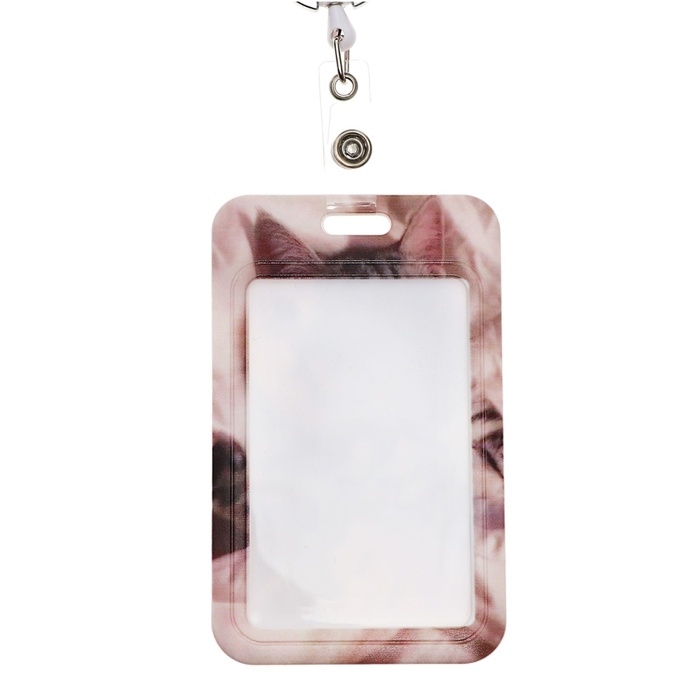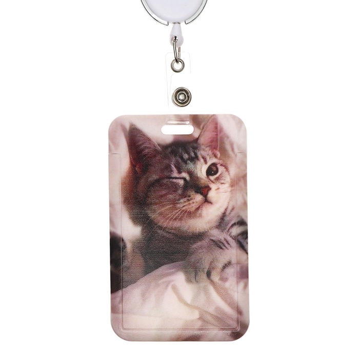 Бейдж-карман вертикальный внешний 110x68мм, внутренний 85x54мм, рулетка-карабин 60см, пластиковый "Котик".