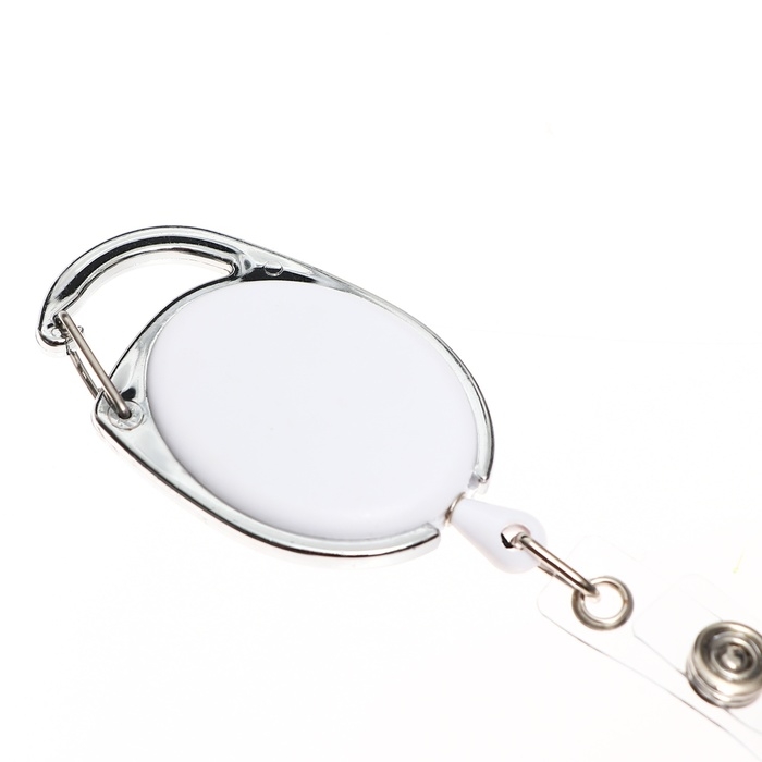 Карабин для бейджа, с держателем-рулеткой, на кнопке, синий