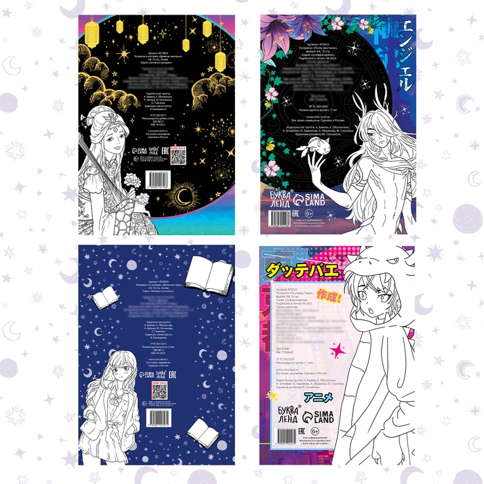 Набор аниме-раскрасок «Для фанатов», 4 шт., А4, Аниме