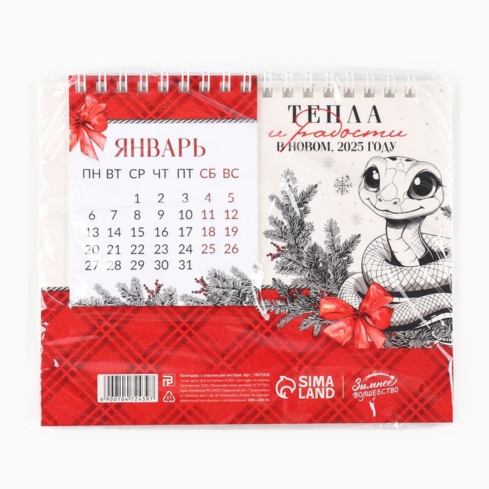 Календарь 2025 настольный с отрывными листами «Новый год: Любви, тепла и волшебства», 16,9 х 14 см